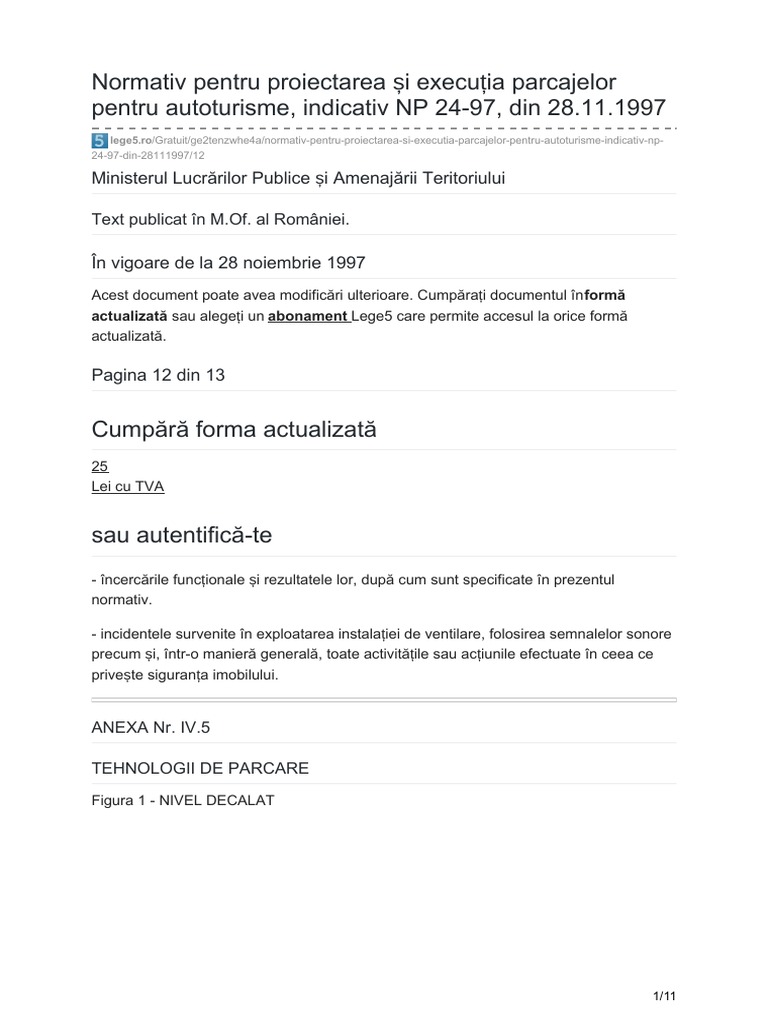 Normativ pentru proiectarea constructiilor publice subterane. Normativ pentru proiectarea și execuția parcajelor pentru autoturisme indicativ np 24 97 din 28 11 1997 prin utilizarea lege5 îți exprimi acordul cu privire la faptul că folosim module cookie în scopul îmbunătățirii conținutului în vederea analizării traficului precum și împotriva utilizării neautorizate. Acesta este un fragment din normativ pentru proiectarea și execuția parcajelor pentru autoturisme indicativ np 24 97 din 28 11 1997 cumpărați documentul în formă actualizată sau alegeți un abonament lege5 care permite accesul la orice formă actualizată. Np 24 97 normativ pentru proiectarea executia si exploatarea parcajelor etajate pentru autoturisme.