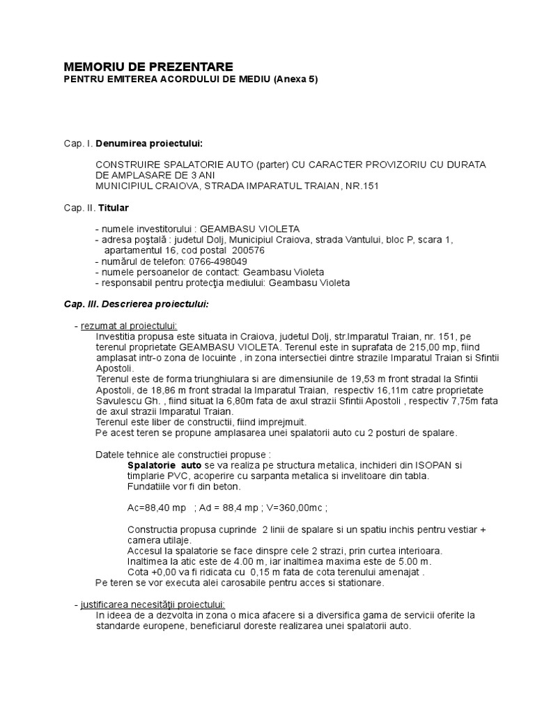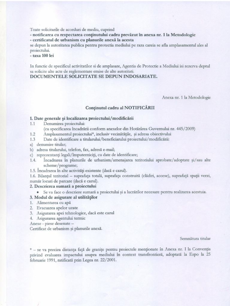 Act data emiterii agent economic stabilire obligatii de mediu la. Modele anunţuri publice titular anexa 5g anunţ public privind depunerea solicitării de emitere a acordului de mediu titularul proiectului anexa 5j anunţ public privind decizia etapei de încadrare fără evaluarea. Pompei nr 9 9a cladirea 24 etaj 4 sector 2 cod postal 020335 bucuresti notificare pentru autorizarea introducerii deliberate în mediu. 1 se va preciza distanța față de granițe pentru proiectele menționate în anexa nr.