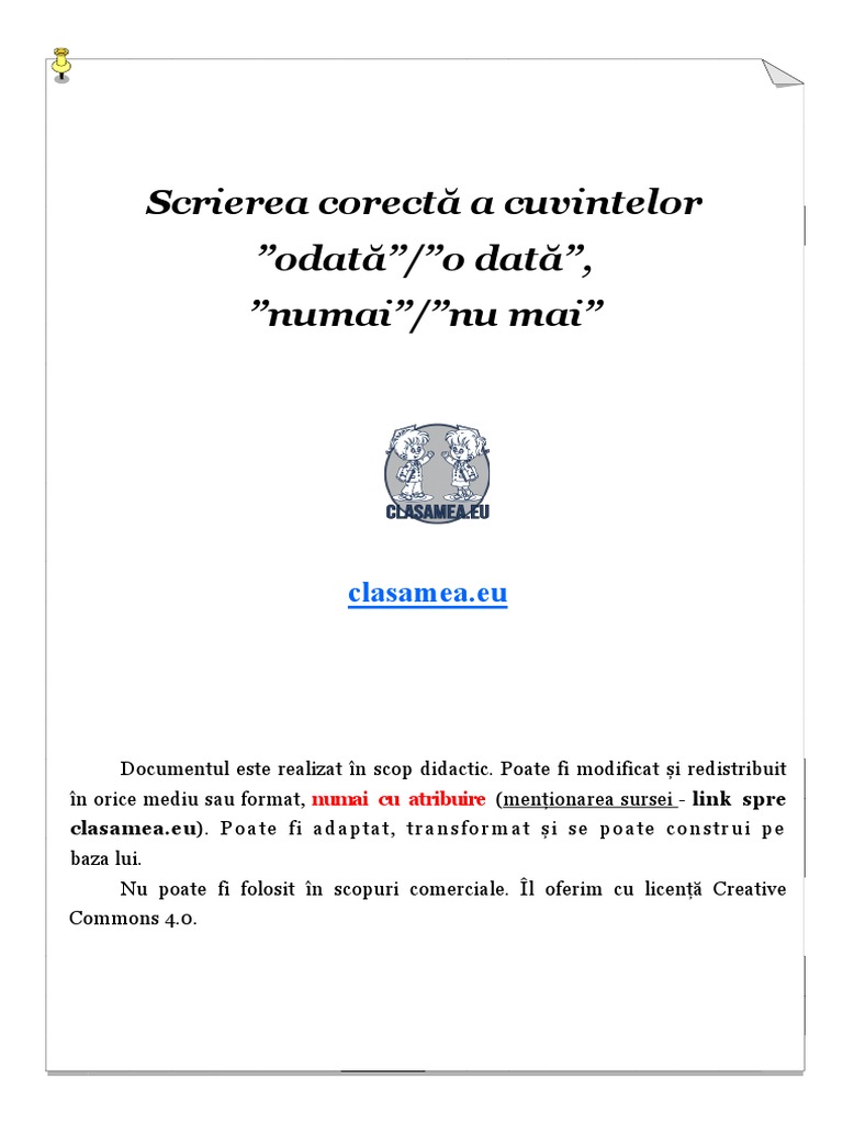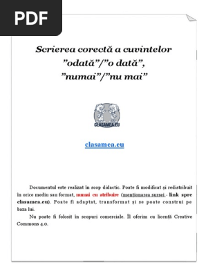Cel mai simplă metodă de a rezolva problema de mai sus este că atunci când se poate înlocui cu doar numai se scrie legat. Du te și salută l pe bunicul de plecare pentru că nu mai stă mult. Ca not anymore din engleză. Odată și o dată numai și nu mai primele două fișe au fost folosite în lecții diferite în momentul de fixare a cunoștințelor în timp ce ultima a fost gândită pentru o lecție de consolidare.