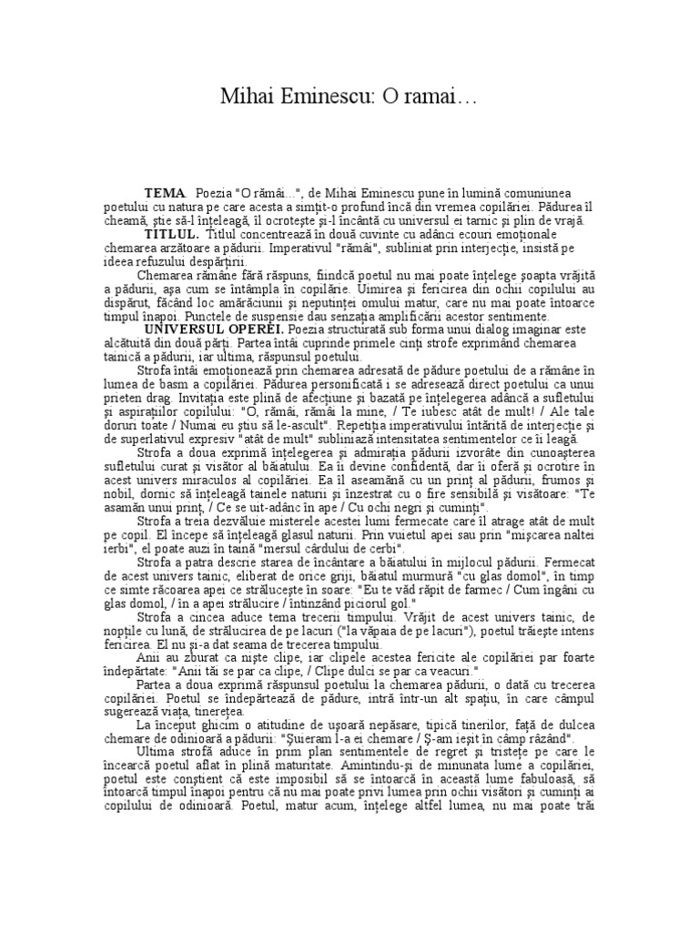 O ramai de mihai eminescu comentariu. în al umbrei întuneric te asamăn unui prinţ ce se uit adânc în ape cu ochi negri si cuminţi. O rămâi de mihai eminescu. O rămâi o rămâi rămâi la mine te iubesc atât de mult. 2 ianuarie 2016 16 42.
