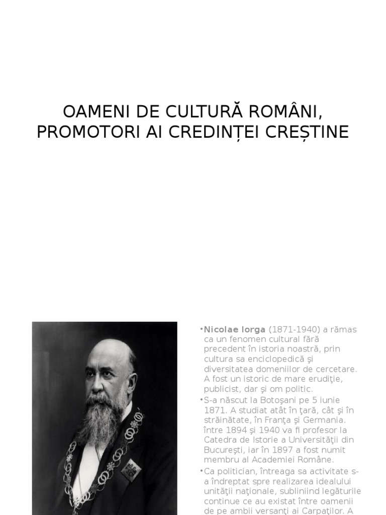 Presedintele a primit luni seara la palatul cotroceni inainte de receptia oferita pentru celebrarea zilei nationale a romaniei paisprezece oameni de cultura romani din diferite domenii de activitate pe care i a decorat in semn de apreciere pentru intreaga activitate pusa in slujba culturii si stiintei romanesti dar si pentru ca au promovat valorile romanesti in lume. Cei mai mari oameni de știință români au avut o contribuție însemnată în tehnologia medicina și aviatica internațională. A ocupat mai multe funcţii în cadrul patriarhiei române intendent al palatului patriarhal inspector pentru învăţământul bisericesc director al bibliotecii patriarhale şi asistent la catedra de istorie bisericească universală de la institutul teologic universitar din bucureşti.