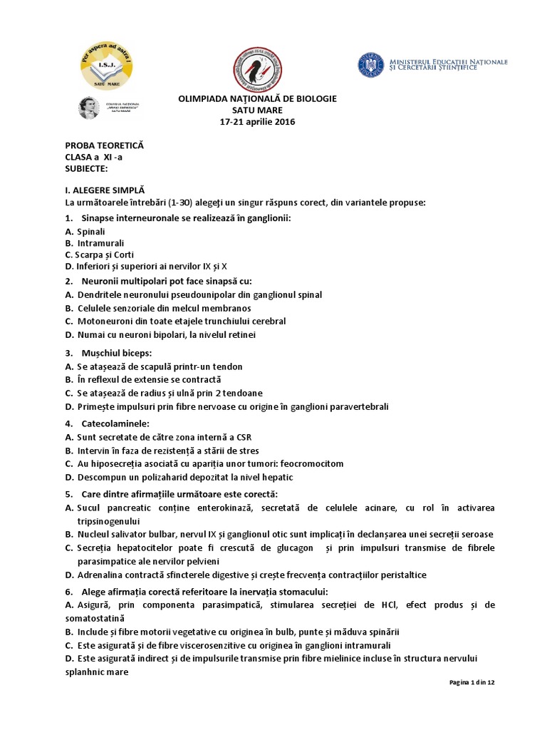 Subiecte olimpiada judeteana de biologie 2016 by inspector scolar ultima modificare 2016 03 08 10 17 subiecte bio. Adaugă tu primul comentariu. A sosit marea zi. Creşterea este asigurată de meristeme.