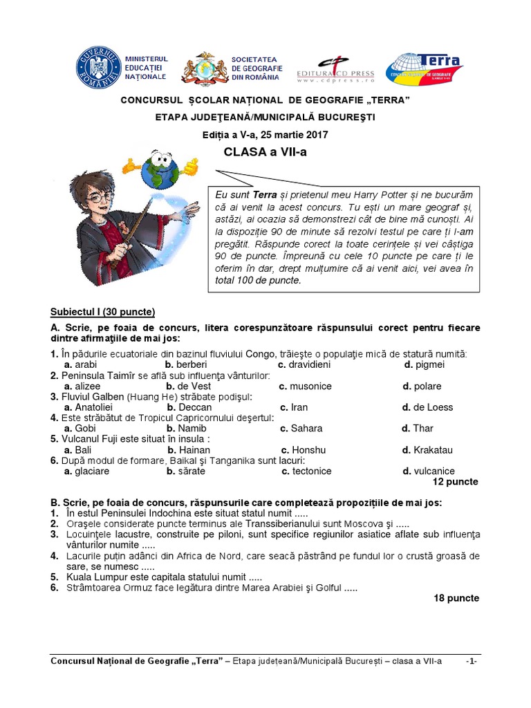 Subiecte si bareme concurs terra editia i clasa 5. Subiecte proba baraj 28 aprilie 2017 1. Olimpiada națională de informatică gimnaziu a avut loc la sibiu în perioada 26 30 aprilie 2017 iar subiectele probelor de concurs sunt. Calendarul olimpiadelor si al concursurilor scolare de geografie 2019 2020.
