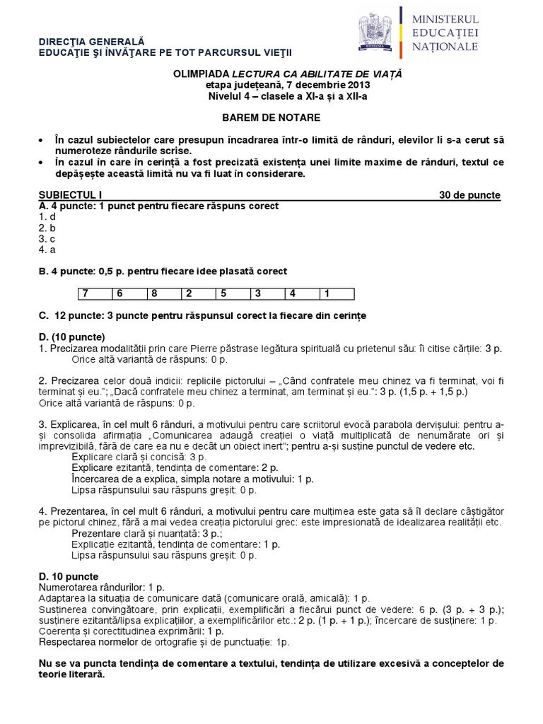 Olimpiada lectura ca abilitate de viață. Nivelul 3 clasele a ix a si a x a. Toate subiectele sunt obligatorii. Ultimele ştiri concurs regional discipolii lui pitagora.