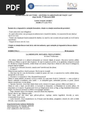 Olimpiada lectura ca abilitate de viata 2018. Bistrița 2 5 aprilie 2015. Your email address will not be published. De asemenea refuzul de a accepta cookie uri nu inseamna ca nu veti mai primi vedea publicitate online. Olav judet 24 03 2018 subiecte si bareme.