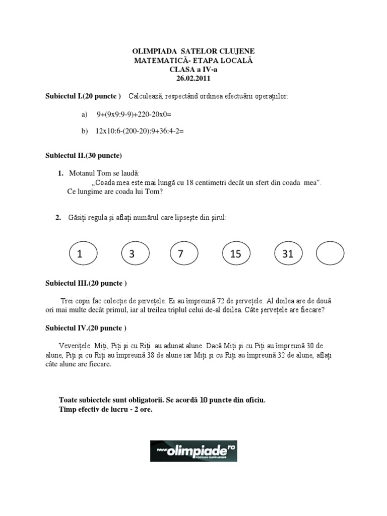 Pe scoala 12 febr 2019 olimpiada satelor din transilvania etapa pe școală 19 februarie 2019 subiecte şi bareme. Subiecte bareme si rezultate olimpiada satelor din romania 2018 4 9m distribuiți. 3016 09 01 2019 poziția 18. Precizări privind olimpiada de matematica etapa locala 08 02 2020.