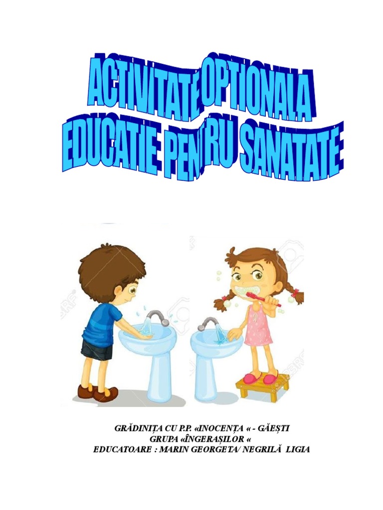 Optional gradinita educatie pentru sanatate. Gradinita joaca un rol crucial in instalarea unor obiceiuri alimentare care vor influenta sanatatea copiilor. Ionescu luciana si enache larisa grupa. Program optional educatie pentru sanatate. Mica fluturasii locul de desfasurare.