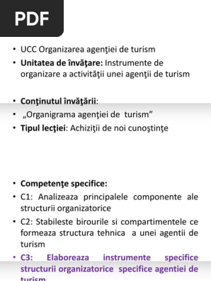 Mai jos poate fi vizualizat cuprinsul si un extras din document aprox. Transporturi eventual si ticketing c. Acest referat descrie organizarea unei agentii de turism. Biroul secretariat care se ocupa.