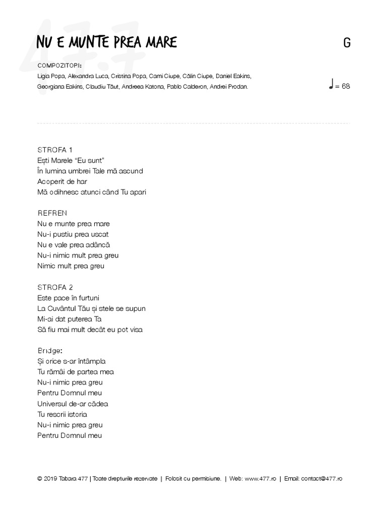 Mă ncred în el orice s ar întâmpla pe drumul meu sau în viaţa mea fie ce o fi în orice zi cerescul tată m a călăuzi. Ma ncred in el orice s ar intamla pe drumul meu sau in viata mea fie ce o fi in orice zi cerescul tata m a calauzit. Mă ncred în el el ştie soarta mea pe stâncă sus sau în adânc de văi lovit de val ajung la. Florin salam si mr.