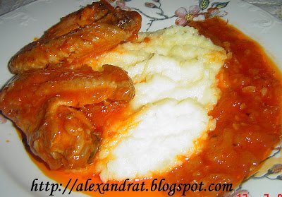 întâi pregătești cartofii pentru piure. înainte cu 2 3 minute de a stinge focul adăugăm cei doi căţei de usturoi rămaşi tocaţi foarte mărunt şi amestecăm. Ingrediente pentru ostropel de pui cu piure de cartofi 4 ciocanele de pui 1 2 capatina de usturoi ulei 1 conserva de rosii decojite sare piper preparare ostropel de pui cu piure de cartofi intr o tigaie se pune uleiul la incins si se pun ciocanele de pui la prajit. Servim ostropelul de pui cu mămăligă sau piure de cartofi şi pătrunjel proaspăt tocat.