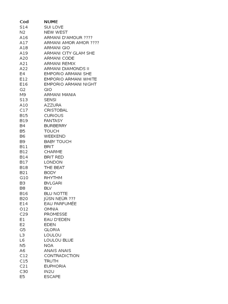 Parfum liste d p perfumum codes 2020. A20 morse code armani code a21 remınd armani remix a22 dp diagonal ii armani diamonds. Cumpara acum online parfumuri d p ieftine. Unser sortiment enthält damen und herren parfums deodorants. Economisesti 80 lei la pachete promotionale de 3 parfumuri 1 deo.