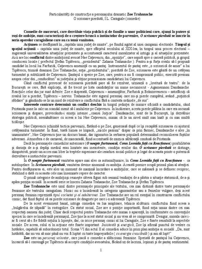 Particularitati de constructie ale personajului o scrisoare pierduta. Caracterizare stefan tipatescu o scrisoare pierduta de i l caragiale. O scrisoare pierdută random. 2 1 o trăsătură dominantă a personajului este demagogia acesteia subordonându i se machiavelismul. Folosește explicațiile date de către profesorii liceunet pentru a putea scrie o caracterizare completă și corectă a personajului zaharia trahanache din comedia o scrisoare pierdută de ion luca caragiale.