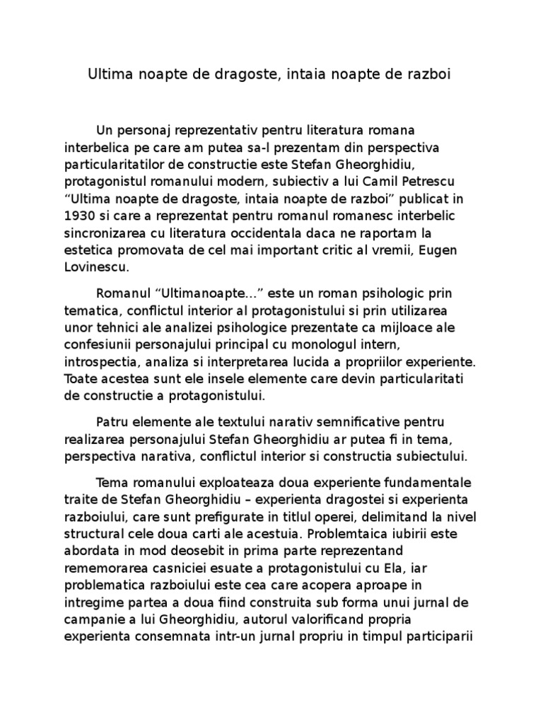 Caragiale camil petrescu sau marin sorescu. în elaborarea eseului vei avea în vedere următoarele repere. Stefan gheorghidiu caracterizarea personajului literatura romana comentarii fișă de lectura rezumat eseu cărți de specialitate stefan gheorghidiu caracterizarea personajului protagonistul stefan gheorghidiu indentificandu se cu autorul camil petrescu in totalitate este un personaj in totalitate narator deoarece relateaza la persoana i si analizeaza cu luciditate evenimentele si. Caracterizarea lui gheorghidiu ultima noapte de dragoste întâia noapte de război caracterizare.