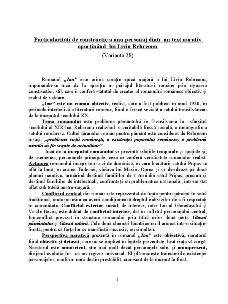 Romanul ion este un roman realist. Romanul ion scris de liviu rebreanu și publicat în anul 1920 descrie realitatea vieții rurale din perioada interbelică și totodată veșnicul conflict între clasele sociale ilustrat prin nedreptățile aduse țăranilor fără posibilități materiale. Varianta 04 particularitatile de constructie a unui personaj dintr un basm cult. In elaborarea eseului vei avea in vedere urmatoarele repere.