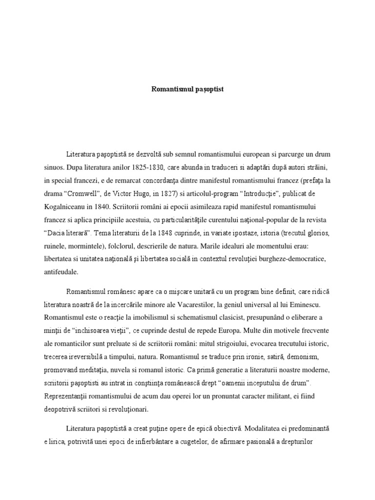 Alte trasaturi ale romantismului. Procedeul specific este antiteza. Definitie pasoptismul cuprinde perioada literara dintre 1840 si 1860 perioada care pentru literatura romana inseamna epoca de modernizare de afirmare a romantismului si de fundamentare a majoritatii speciilor. Prepasoptismul 1830 1840 pasoptismul 1840 1860.
