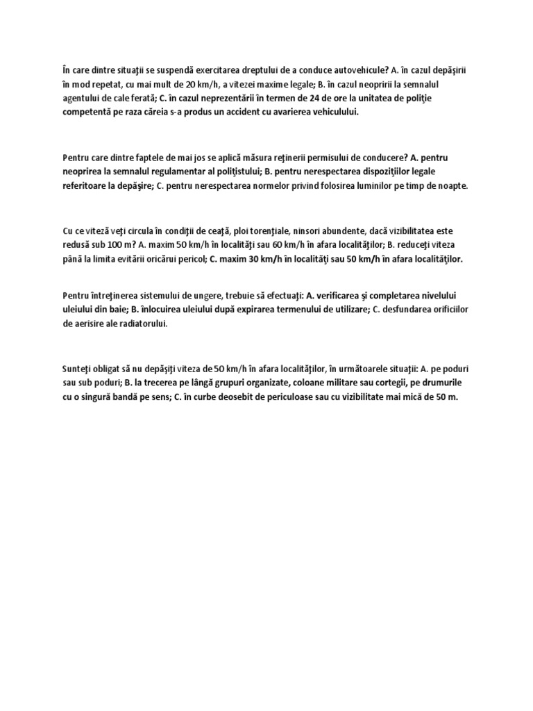 Pentru neoprirea la semnalul regulamentar al poliţistului. Pentru neacordarea priorităţii de trecere. Drpciv chestionare auto 216. Pentru care dintre faptele de mai jos se aplică măsura reţinerii permisului de conducere.