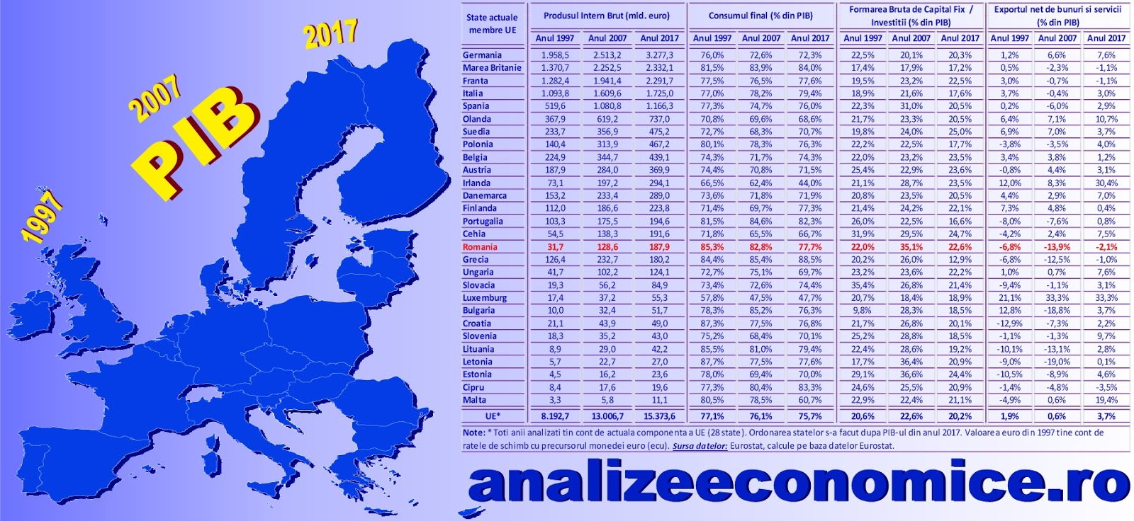 Nu suntem pregătiţi pentru o recesiune românia contrastelor bloomberg. Pib romania 2017 1 economia româniei a crescut cu 7 în 2017 date semidefinitive ins anicescu coface românia. în 2016 ue a avut în total un pib de 14 820 miliarde de euro dintre care aproape trei sferturi circa 72 5 a fost înregistrat în cele 19 state membre ale zonei euro potrivit datelor oficiului european de statistică eurostat. Practic românia a înregistrat o rată a creșterii economice egală cu cea a chinei după ce beijingul a raportat un pib cu 6 9 mai mare în 2017 față de 2016 potrivit financial times.