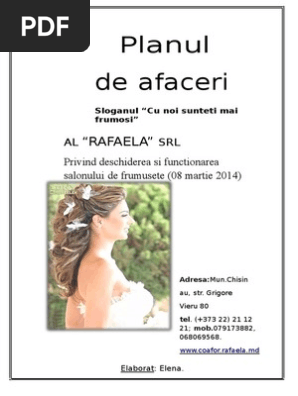 Una dintre cele mai bune afaceri ramane salonul de infrumusetare. Pentru a avea o idee cat mai clara ce implica o astfel de afacere este necesar sa realizati un plan de afacere bine structurat. Date de identificare 1 numele firmei donna felice style 2 cod unic de inregistrare ro26523992. Mai jos poate fi vizualizat un extras din document aprox.