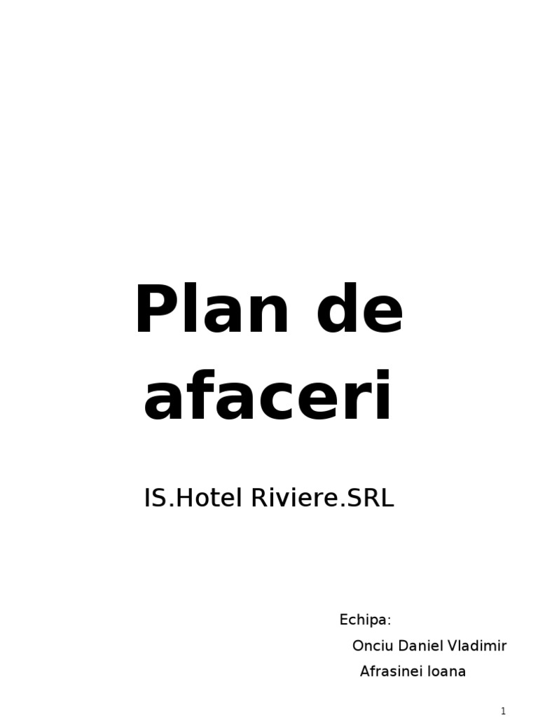 Sinteza planului de afaceri. C coabilitatea clientelei de afaceri cu clientela de agrement ridica probleme de natura urmatoare. Societatea este administrată de un consiliu de administrație format din șapte membri. Model plan de afaceri pentru deschiderea si modernizarea unui hotel sinteza planului de afaceri hotelul riviere este un hotel ce vrea sa iasa din rutina oferita de marile lanturi hoteliere propunandu si sa ofere clientilor sai o experienta deosebita de fiecare data cand se cazeaza la noi prin cele mai diverse modalitati de relaxare si entertainment dar si prin siguranta ca toate.