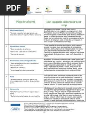 Plan De Afaceri Magazin Alimentar