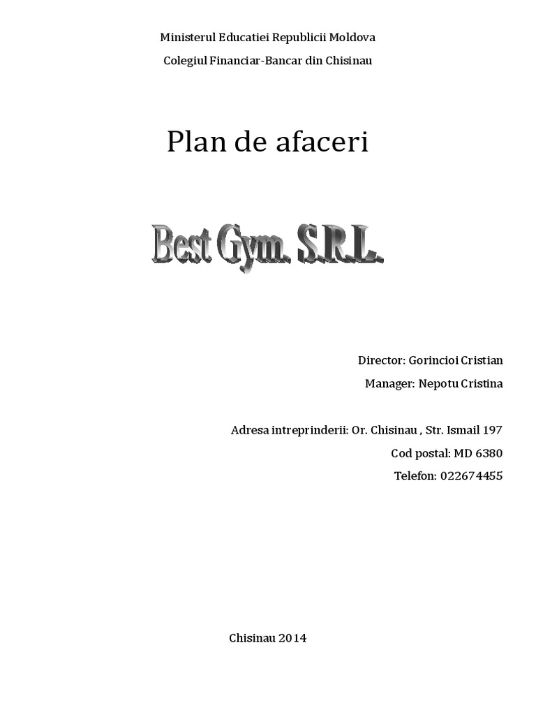 Plan de afaceri sala de fitness. Produse si servicii iv. Crearea unei clientele fidele care s fie mulumit de serviciile oferite de firma noastr. O descriere generala a afacerii iii. Mai jos poate fi vizualizat cuprinsul si un extras din document aprox.