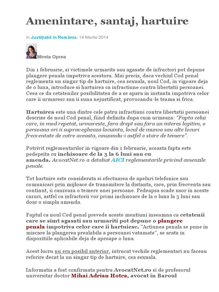 Plangere penala amenintare cu moartea. în fapt în data de 02 09 2013 minorul anghel ionuţ cosmin a fost găsit decedat în zona. Apreciem că este foarte grav şi nu i singurul care a fost ameninţat. Legislație conexă 4 jurisprudență reviste 19 doctrină 6 modele 1 1 fapta de a amenința o persoană cu săvârșirea unei infracțiuni sau a unei fapte păgubitoare îndreptate împotriva sa ori a altei persoane dacă este de natură să îi producă o stare de temere se pedepsește cu închisoare de la. Opinia fiecărui om este opinia lui eu nu m am dus să i înjur pe niciunul nu i am amneinţat cu moartea am primit 150 de ameninţări cu moartea pe facebook pentru care dimineaţă mi am contactat avocaţii 150 de persoane care mi au dat numele lor.