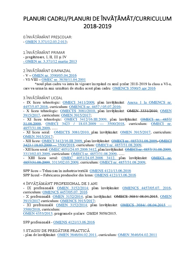 Incepand cu anul scolar 2018 2019 alocarea orara pentru disciplina optional integrat la nivelul mai multor arii curriculare din planurile cadru de invatamant pentru invatamantul gimnazial prevazute in anexele 2 7 ale ordinului ministrului educatiei nationale nr. 0 stele 0 review uri. Cele mai interesante stiri despre plan cadru invatamant primar. Structura anului școlar 2018 2019 omen 3220 consfătuirea județeană a profesorilor de fizică 13 09 2018 programa școlară pentru disciplina fizică clasa a vi a.